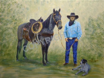 "Mike and Austin on JA Mare" © 2004 by Nadine L. Meade, 24" x 36".